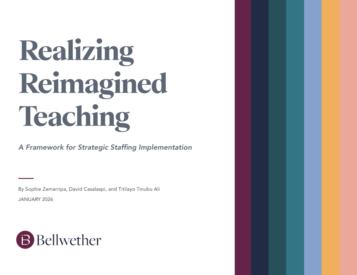 The success of any new idea in schools and districts depends not only on the design itself but also on the conditions that allow it to take hold. Bellwether’s seven-part implementation framework offers a roadmap for system leaders interested in moving strategic staffing from idea to practice.