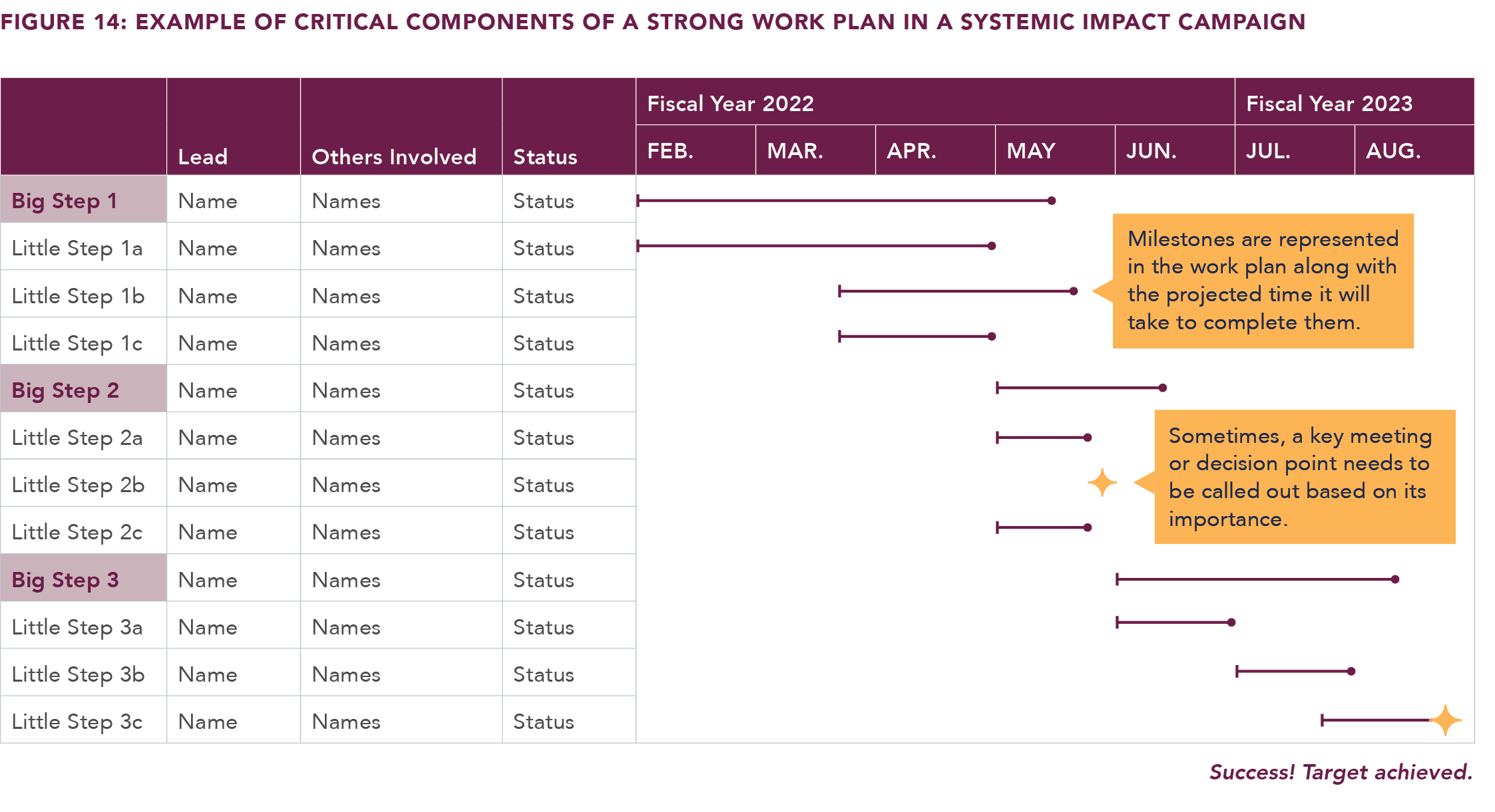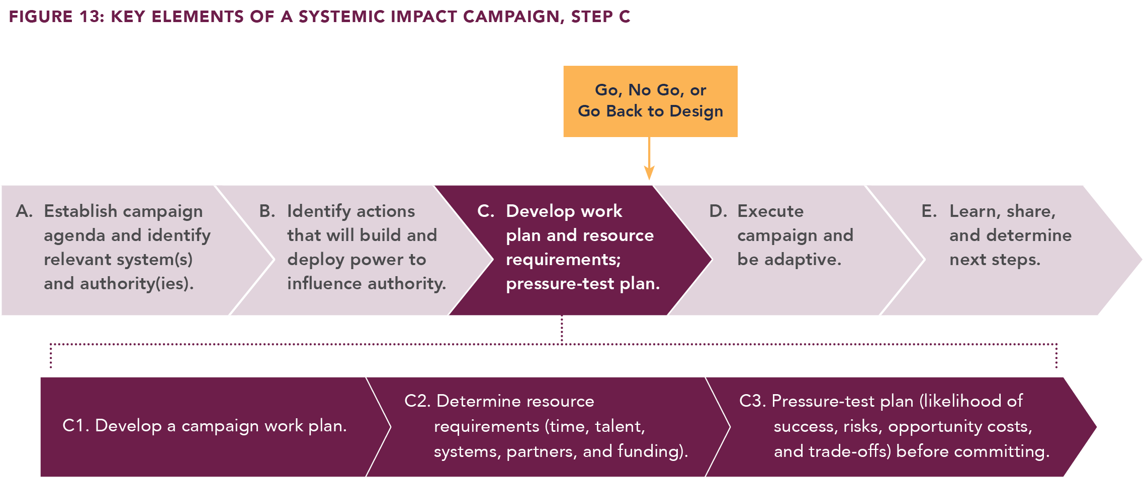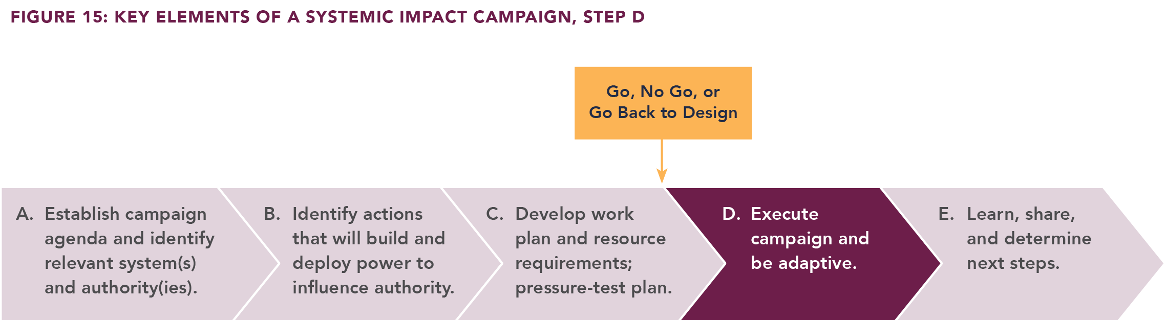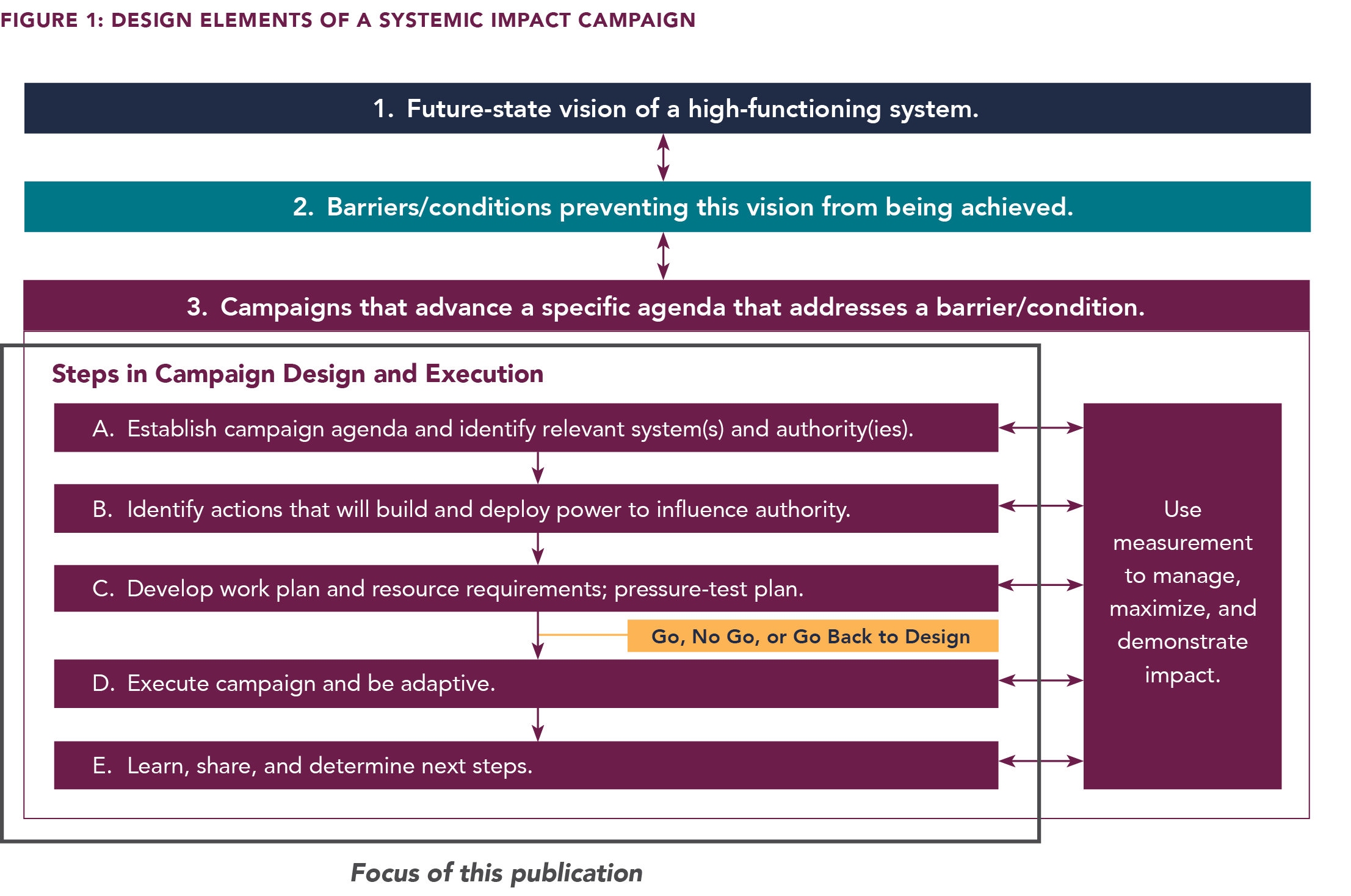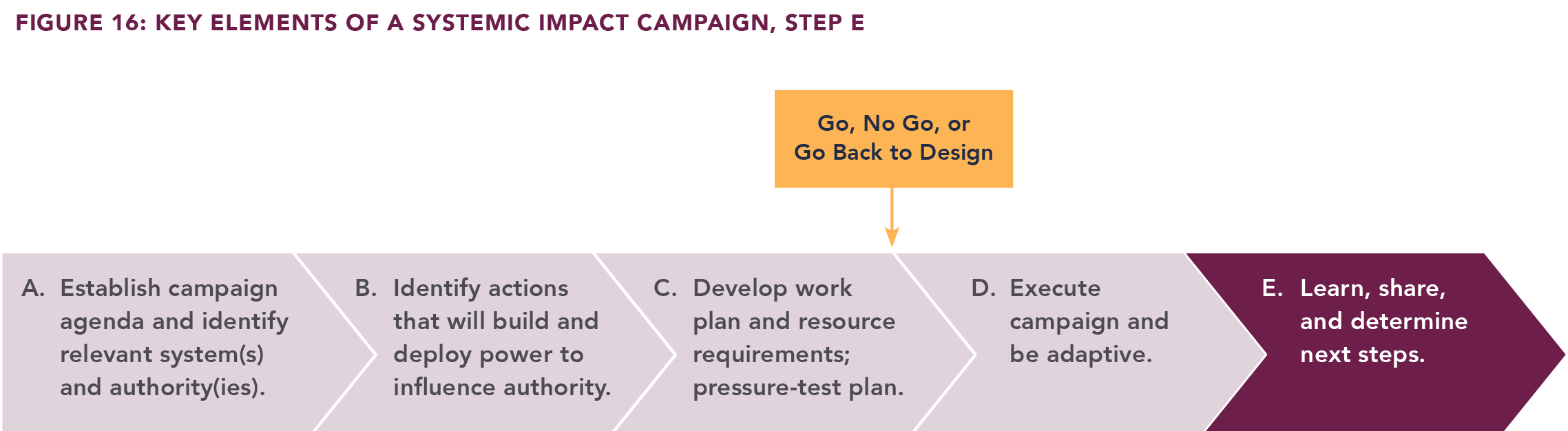 At some point, a specific Systemic Impact campaign is considered finished — via either success or failure — both of which likely lead to the next campaign in an organization’s broader, enduring Systemic Impact campaign (Figure 16).