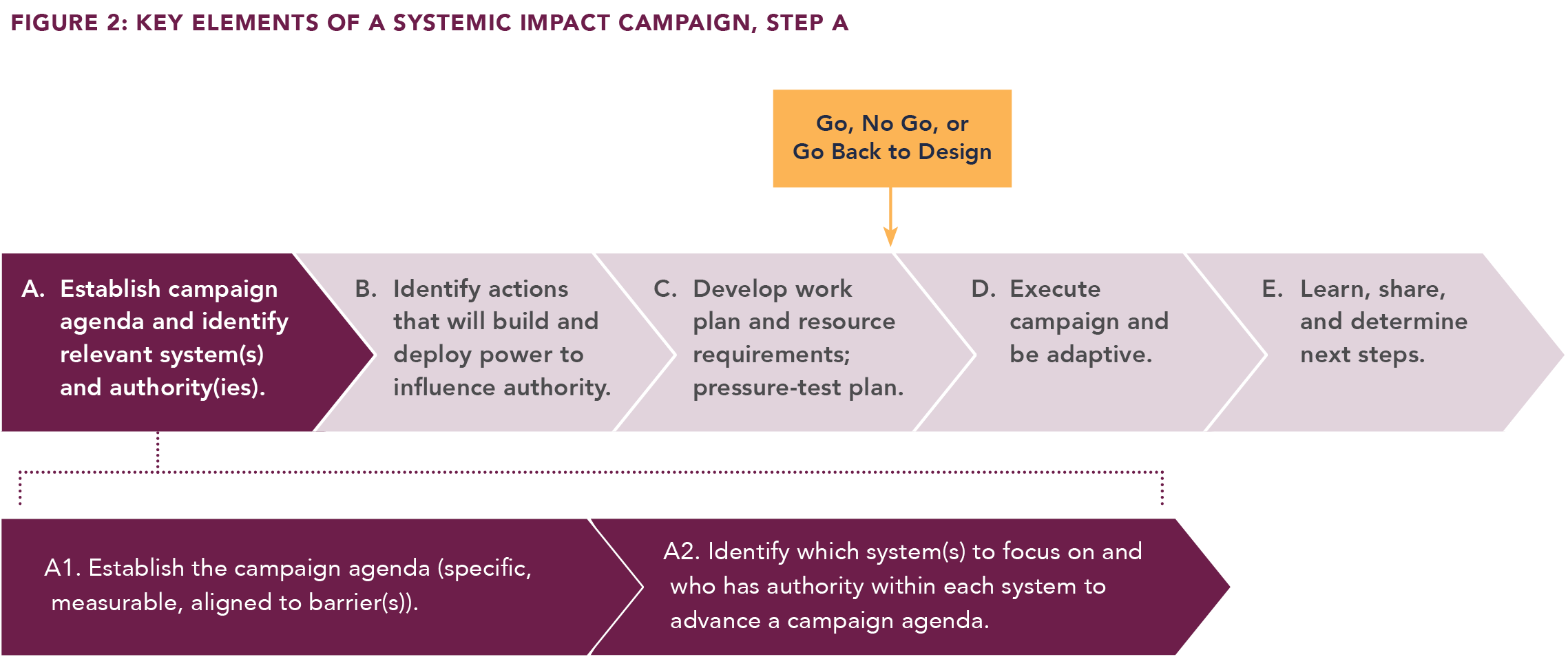 As an organization or coalition embarks on a Systemic Impact campaign, the first step is to establish its agenda (Step A1) and then identify which systems need to be engaged with (Step A2) and who has authority within those systems to advance the campaign’s agenda (Figure 2).